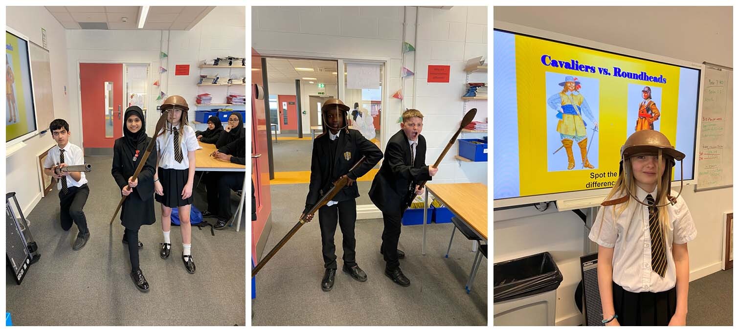 Year 7 recently completed their studies of the English Civil War. This unit helped them to understand the establishment of parliamentary democracy in the UK and explore the conflict and challenges leading up to this. Students also tried on the replica Civil War helmets and handled the replica weapons, helping them to get a sense of the way the Civil War was fought by soldiers.