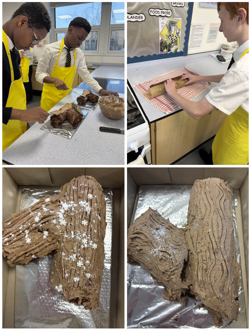 Under the guidance of Miss McKee and Mr Rose students explored traditional Yule Log techniques, including how to bake a light chocolate sponge, prepare rich buttercream, and use decorative methods to create the iconic “tree bark” effect. Not only did the task allow students to develop practical cooking skills, but it also encouraged problem-solving, time management, and attention to detail — all essential components of the catering curriculum.