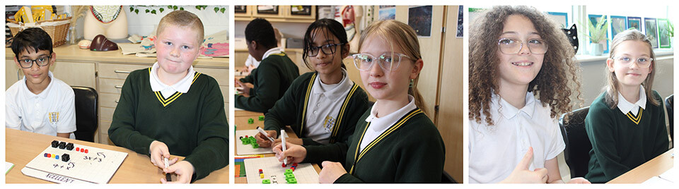 Year 6 students have been learning how to write and solve algebraic questions during their Maths lessons. At first quite a few of the students were nervous about the prospect of algebra. However, using practical equipment such as cubes and dinnes blocks enabled all pupils to make good progress. Students were able to substitute cubes for letters, which enabled them to create and write formula. You can see by the smiles on the pupils' faces that they enjoyed their lesson and they felt confident in writing and solving algebraic equations.