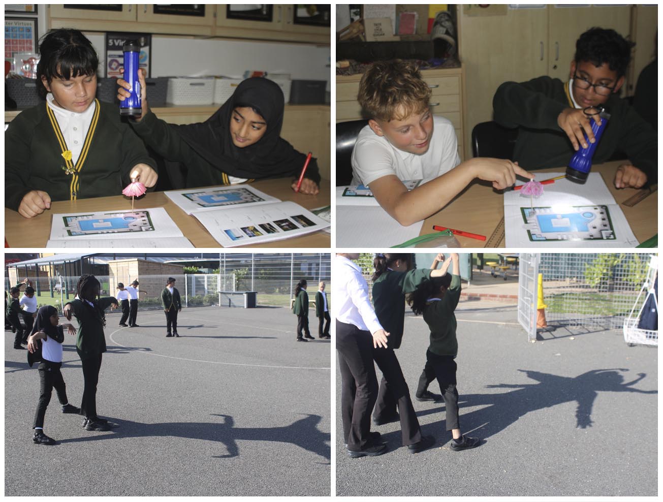 Students have been exploring light during their Science lessons. They have used to sun and their shadows to create alien monster shadows. They have learnt that our shadows change in size during the day due to the position of the sun in the sky.