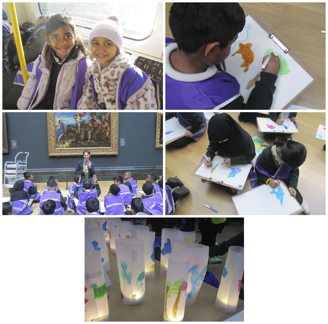 As part our art and design curriculum, Year 3 visited the National Gallery and took part in a workshop focused on colour. We walked through different rooms in the gallery, looking at paintings that used dark colours and others that used light colours, which helped us understand how colour can affect mood and atmosphere. The workshop was a fun and interesting experience, as we were able to explore real artworks and share our ideas. We also completed a small practical activity where we designed and created our own lamps, using colour and light creatively.